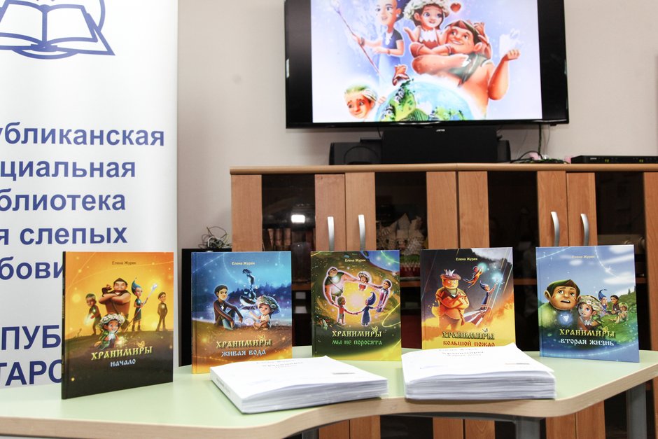 Сегодня в Казани прошла презентация первого издания экологического фэнтези «Хранимиры», напечатанного шрифтом Брайля. Две книги – «Начало» и «Живая вода» – познакомят детей со сказочными существами – хранимирами. Это дна из немногих современных книг, выпущенных с использованием рельефно-точечного шрифта. Книги на безвозмездной основе поступили во все специализированные школы и библиотеки России для слепых.