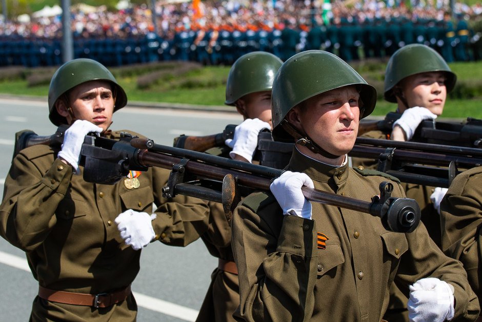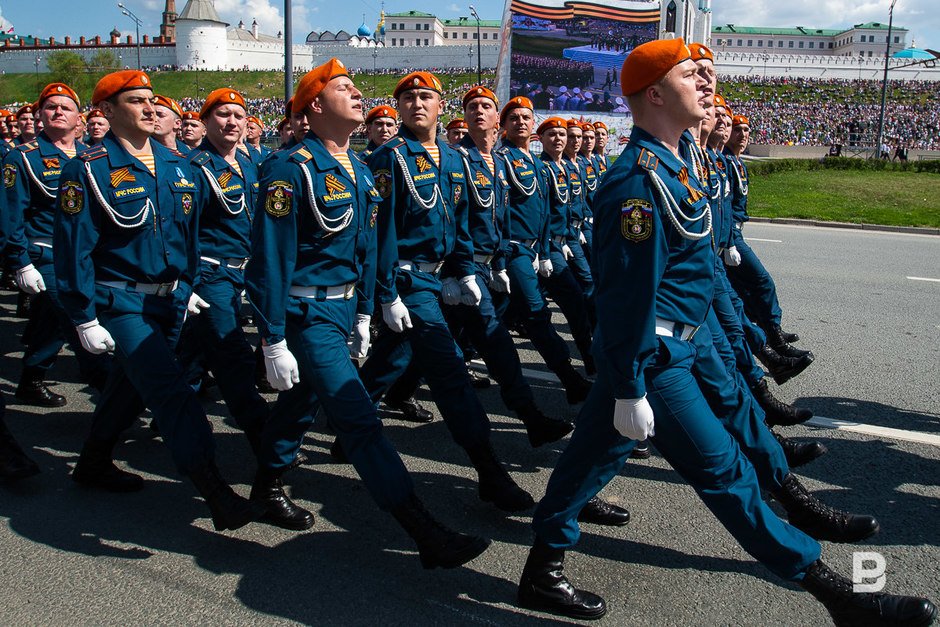 Сегодня на площади Тысячелетия состоялся парад войск Казанского гарнизона в честь 74-й годовщины Победы в Великой Отечественной войне. Строевым шагом по площади прошли более 2 тыс. военнослужащих, курсантов военных училищ, кадетских классов и Юнармии, проехала боевая техника, в том числе легендарные танки ИС, ИС-3 и Т-34 и ретроавтомобили. Завершился праздничный парад театрализованным прологом и сводным хором из 1 400 человек, которые исполнили песню «День Победы». Парад Победы — в репортаже фотокорреспондента «Реального времени».