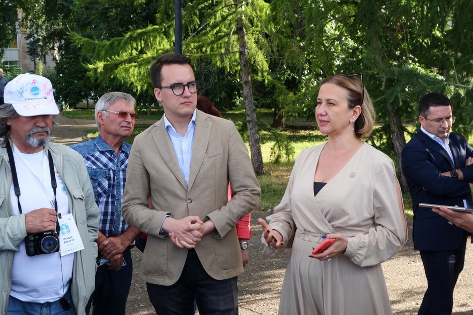 Министр культуры РТ Ирада Аюпова и ее коллега из Республики Коми Сергей Емельянов встретились сегодня с художниками, которые принимают участие во Всероссийском плэнере-симпозиуме «Со-творение». Встреча прошла в Фуксовском саду.
