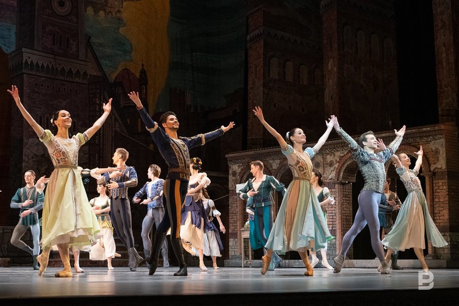 Сегодня в Казанском театре им. Джалиля представили балет «Ромео и Джульетта» Сергея Прокофьева. Спектакль приурочен к 70-летию заслуженного артиста России и Татарстана, художественного руководителя балета Владимира Яковлева. Главные партии исполнили Аманда Гомес, Михаил Тимаев, Олег Ивенко.
