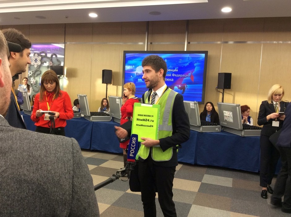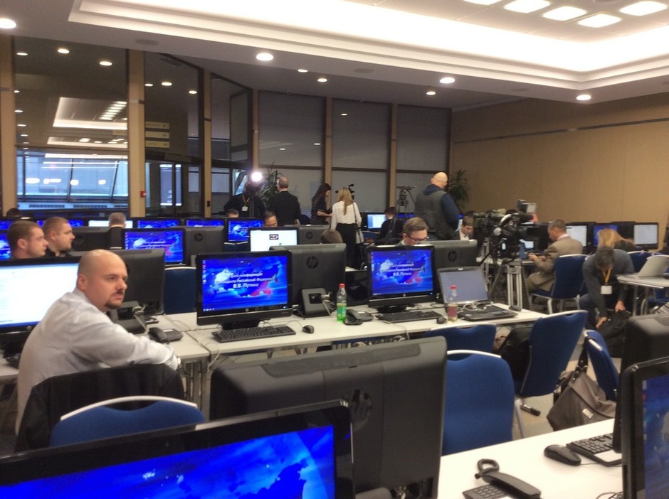 Сегодня в полдень президент России Владимир Путин в одиннадцатый раз соберет журналистов на большую пресс-конференцию. "Годовой отчет" главы государства пройдет в Центре международной торговли. В этом году на большую пресс-конференцию аккредитовано 1390 представителей СМИ, в их числе – директор "Реального времени" Анна Саушина. Она ведет фоторепортаж о том, как в ЦМТ журналисты готовятся к общению с главой государства.