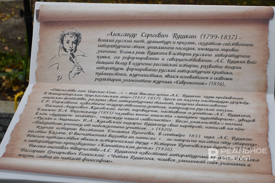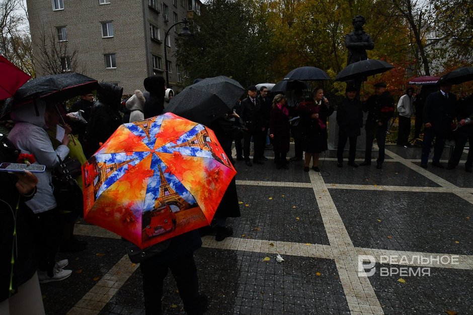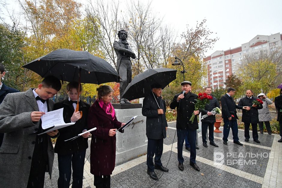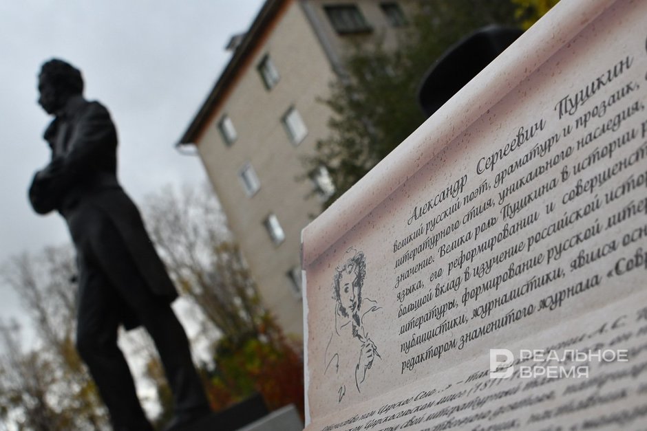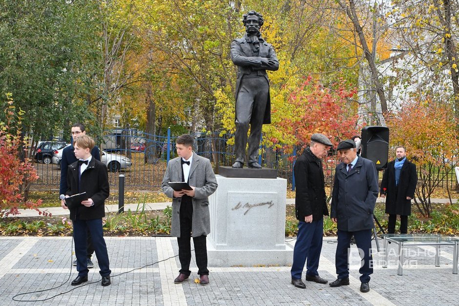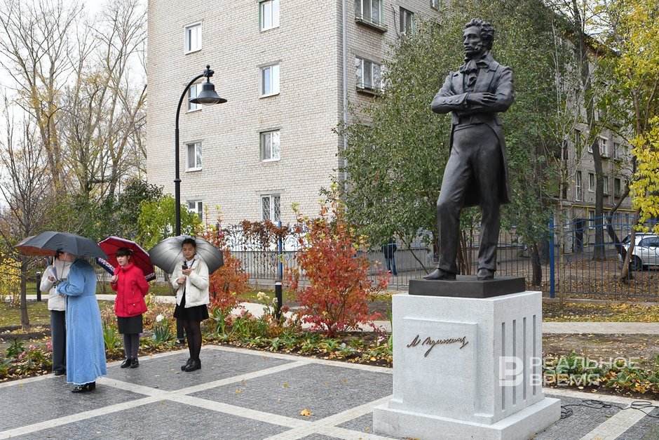 Бронзовый памятник Александру Пушкину установили на территории казанской гимназии №93, которой в 2023 году присвоено его имя. Участие в церемонии открытия монумента приняли председатель Государственного Совета Татарстана Фарид Мухаметшин, глава Минобрнауки республики Ильсур Хадиуллин и сенатор Александр Терентьев.