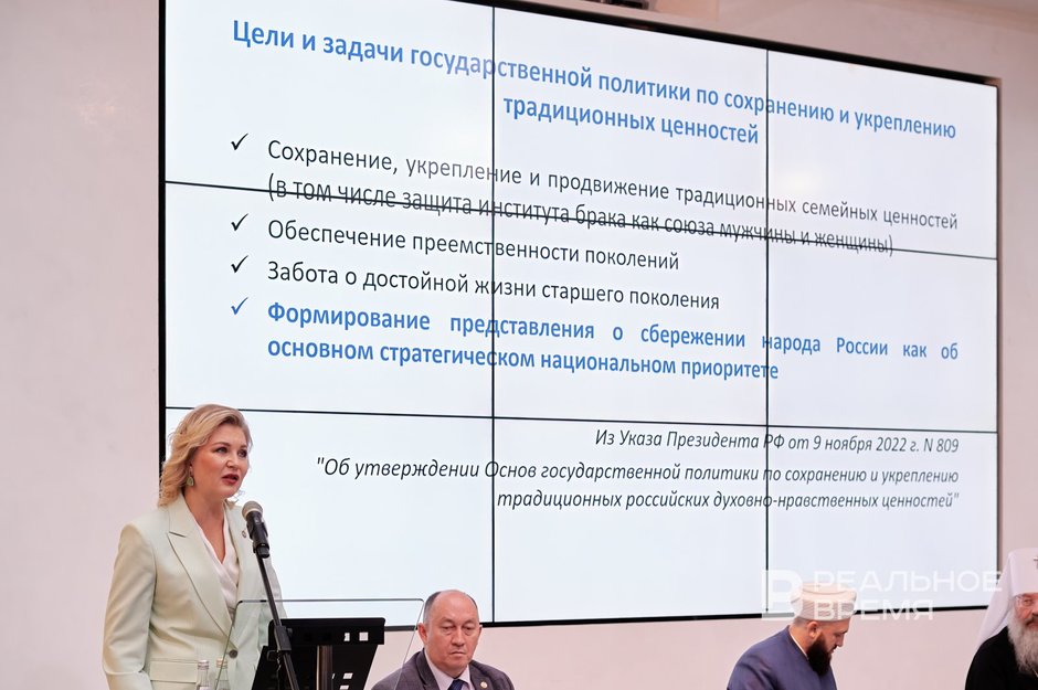 В президиуме присутствовали митрополит Казанский и Татарстанский Кирилл, муфтий РТ Камиль хазрат Самигуллин, начальник управления по взаимодействию с религиозными организациями Департамента Раиса РТ Альберт Дирзизов, историк и публицист Сергей Перевезенцев.