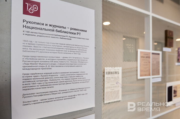 В Национальной библиотеке РТ открылась выставка «Рукописи и журналы — ровесники Национальной библиотеки РТ», приуроченная к ее 160-летию. Среди экспонатов — первые издания произведений Островского, Лескова, а также «Алисы в Стране чудес» 1865 года, чей тираж почти уничтожили из-за недовольства иллюстратора. Дополнили экспозицию журналы-ровесники библиотеки, отражающие эпоху великих перемен.