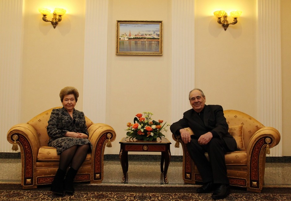 Сегодня госсоветник Республики Татарстан Минтимер Шаймиев встретился с Наиной Ельциной, которая приехала в Казань для посещения одиночных финалов и участия в церемонии награждения победителей международного теннисного турнира серии ITF "Кубок Ельцина".