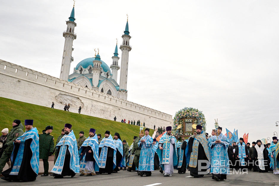В праздник Казанской иконы Божией Матери и День народного единства в Казани состоялся общегородской крестный ход с Казанской иконой Божией Матери. Шествие, собравшее 7 тысяч человек, началось у стен древнего Благовещенского собора Казанского кремля и завершилось в Казанском Богородицком монастыре, на месте обретения в 1579 году главной святыни. Как это было — в фоторепортаже «Реального времени».