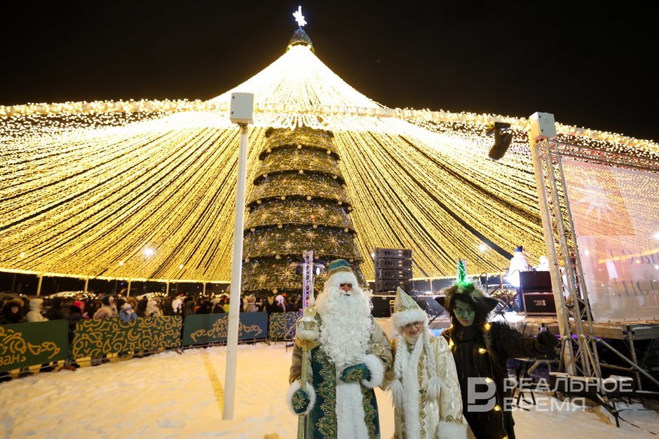 У Центра семьи «Казан» официально открыли главную елку города. Гостей ждала насыщенная развлекательная программа с участием хедлайнеров: духового оркестра Just Brass, исполнителей Хопелес и Майкрайз, артистов казанской городской филармонии. В новогоднюю ночь у «Чаши» гостей порадуют диджей-сет, выступление кавер-группы «Швейцария», барабанное шоу и концертная программа с элементами караоке. Как зажгла огни елка — в фоторепортаже «Реального времени».