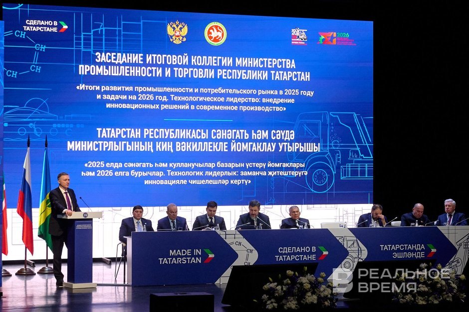 В Нижнекамске состоялось заседание коллегии Министерства промышленности и торговли РТ, где подвели итоги 2025 года. Индекс промпроизводства в республике составил почти 110%, отгружено продукции на сумму свыше 6 трлн рублей. На коллегии особое внимание уделили вопросам роботизации, модернизации производств и развитию кадрового потенциала. На выставке в рамках мероприятия представили новинки КАМАЗа, Sollers и других ключевых предприятий.
