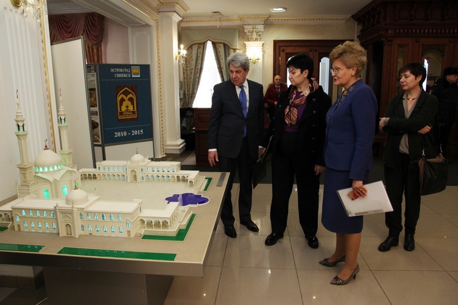 Перед совещанием исполнительный директор Фонда «Возрождение» Татьяна Ларионова ознакомила гостей с ходом реализации культурно-исторического проекта федерального значения «Культурное наследие: древний город Болгар и остров-град Свияжск».