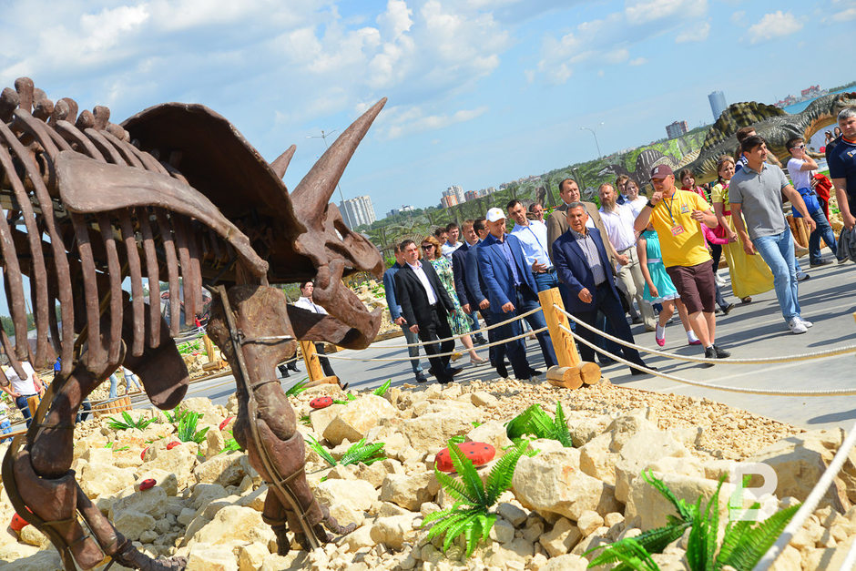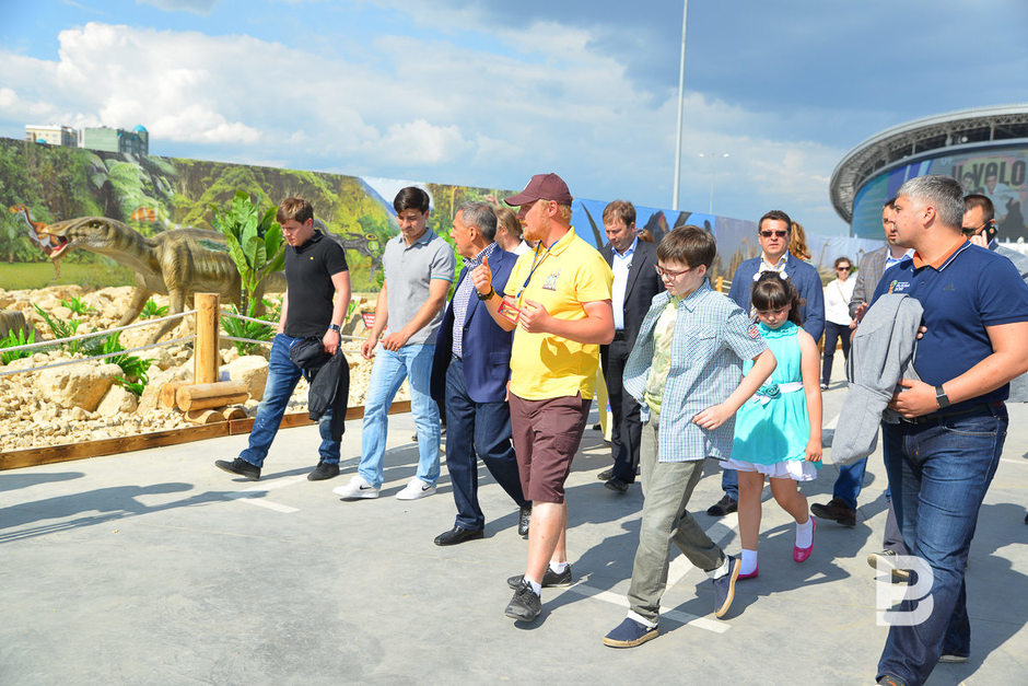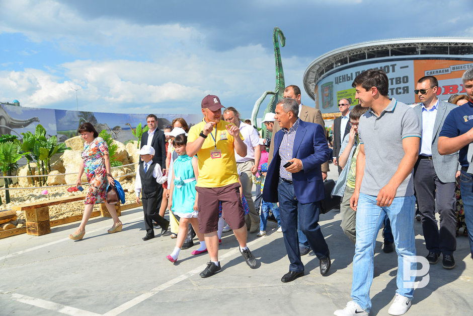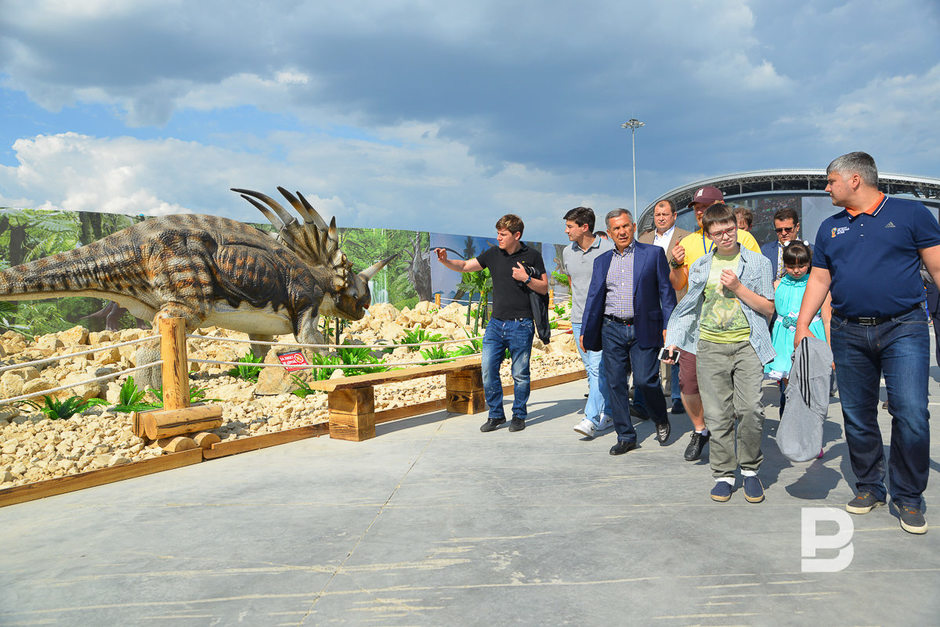 Сегодня на территории стадиона Kazan-Arena открылся «Юркин Парк». Одним из первых гостей парка динозавров стали президент РТ Рустам Минниханов, помощник президента Наталия Фишман, московский школьник Степан Савельев, в акции по поддержке которого в Сети принял участие и глава Татарстана.