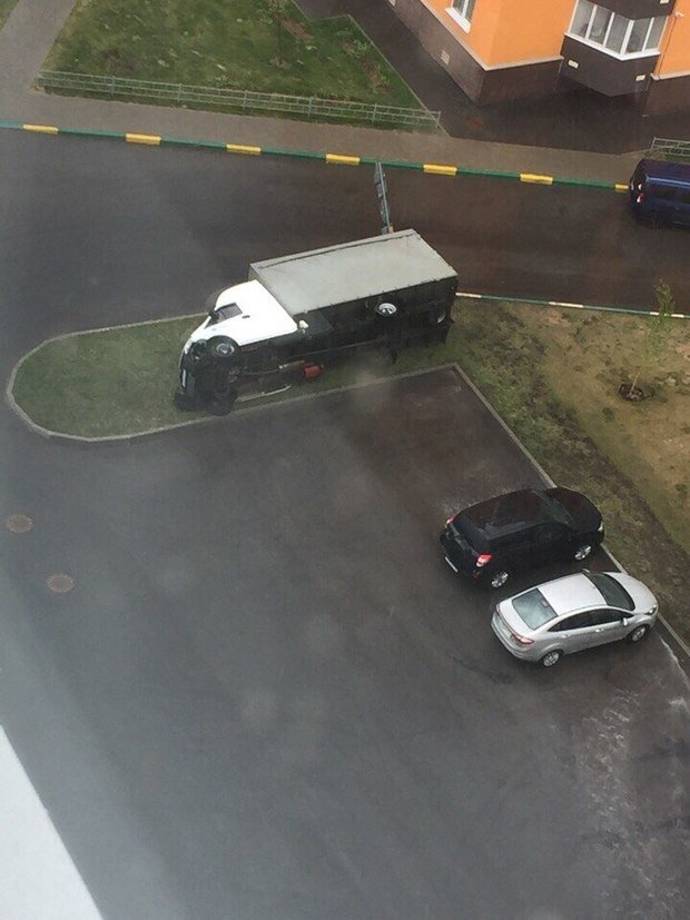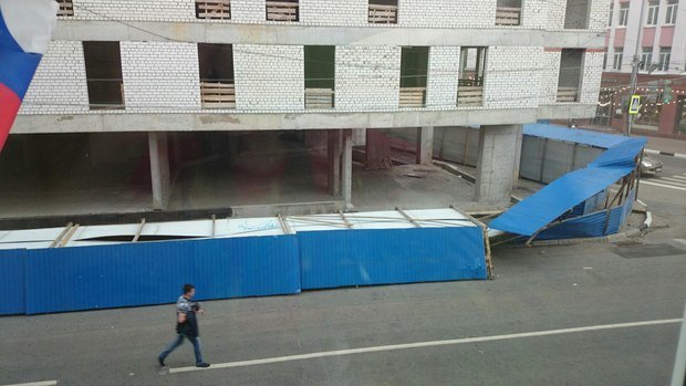 Кроме того, один из пользователей сообщил о повреждении ограды для пешеходов возле стройплощадки. Он отметил, что в момент, когда ветер покорежил ограждение, внутри находились люди.