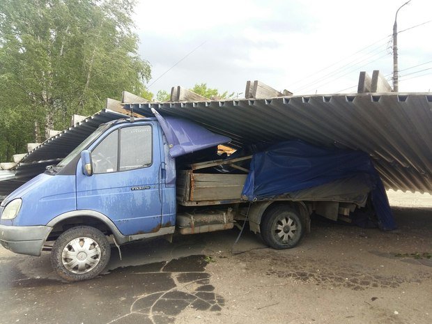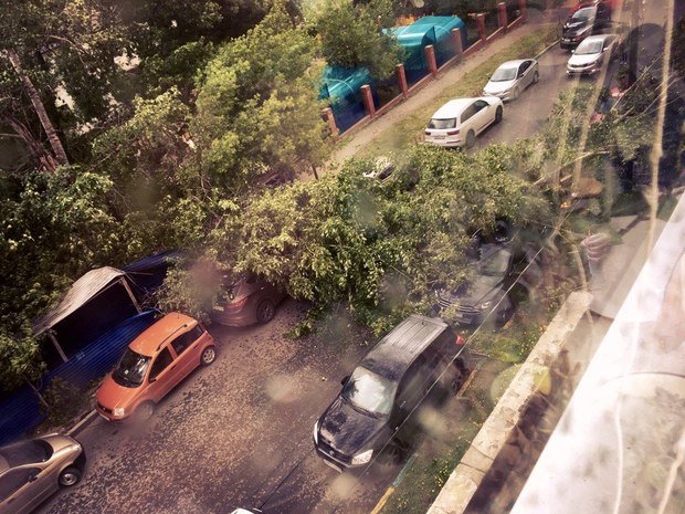 В Нижнем Новгороде шквалистый ветер нанес многочисленные повреждения. В городе повалены деревья и сорваны крыши нескольких домов.