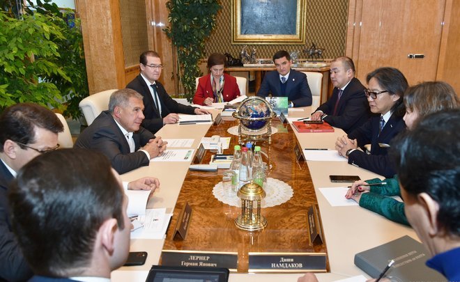 Президент Татарстана Рустам Минниханов обсудил вопросы сотрудничества с руководством монгольской компании APU Company, которая является крупнейшим производителем алкогольных и безалкогольных напитков в своей стране.