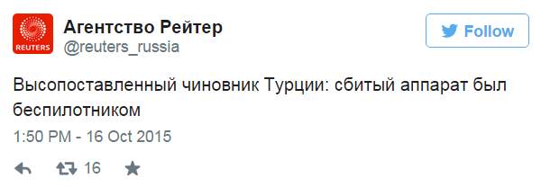 Агентство «Аль-Арабиа» отмечает, что турецкие силовики предварительно трижды предупредили самолет о намерении стрелять по нему, как того требуют правила ведения боев.