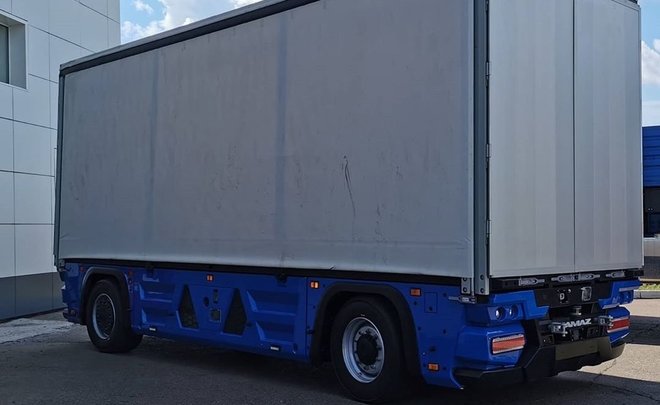 Беспилотный грузовик КАМАЗа на электрической тяге под названием «Челнок» больше напоминает прицеп тягача. Однако это полноценный автомобиль, просто без водителя.