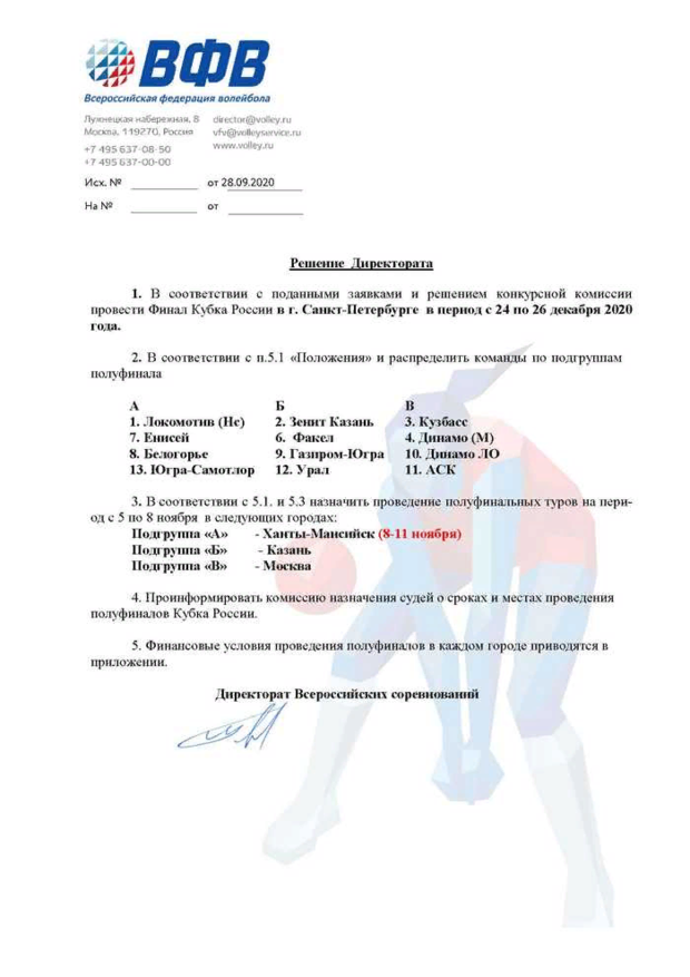 Санкт-Петербург примет финальный этап Кубка России по волейболу среди мужских команд. Такое решение было принято по итогам конкурсного отбора директоратом Всероссийской федерации волейбола (ВФВ).