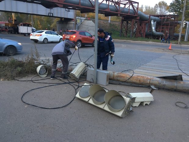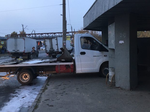 По словам очевидцев, у трамвая что-то случилось с тормозами, он задел несколько «газелек», снес столбы и остановился только метров через 200, уже после моста.