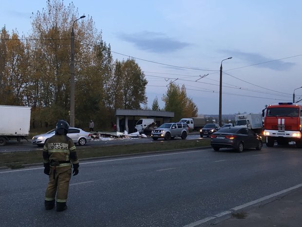 На данный момент на месте аварии с участием трамвая и двух грузовиков образовалась пробка. Движение не перекрывали. Об этом сообщает корреспондент «Реального времени».