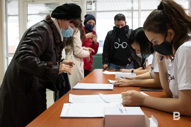 «Реальное время» побывало на одной из 250 площадок диктанта в Татарстане — в казанском Доме дружбы народов. На входе у прибывающих измеряли температуру, предлагали воспользоваться санитайзером и провожали в зал на 30 мест, в котором на этот раз было только 15 человек — по одному за партой.
