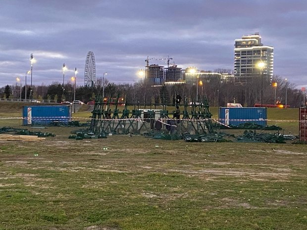 Пока рабочие монтируют металлическую конструкцию. Они рассказали корреспонденту «Реального времени», что работы начались только сегодня.