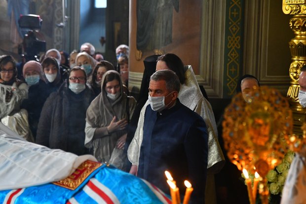 В Благовещенском соборе Казанского Кремля началось отпевание митрополита Татарстанского и Казанского Феофана.