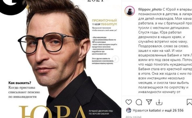 Дворнику из Уфы Юрию Ветлугину после нашумевшей фотосессии в стиле GQ предложили сниматься в рекламе. Об этом на своей странице в Facebook сообщил директор УЖХ Артур Шагаргазин.