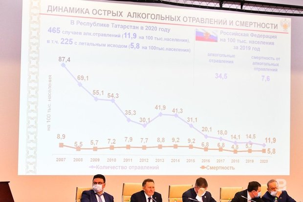 В 2020 году в Татарстане алкоголем отравились 465 человек, 225 из которых умерли. Показатель смертности по этой причине в республике остался на уровне 2019 года, сообщили сегодня на итоговом заседании коллегии Госалкогольинспекции РТ.