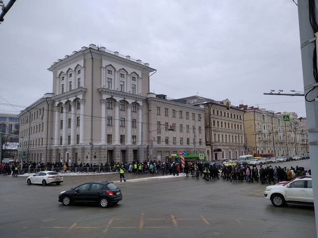Большое шествие ушло на Право-Булачную улицу, люди спокойно перешли через дорогу по сигналу светофора.