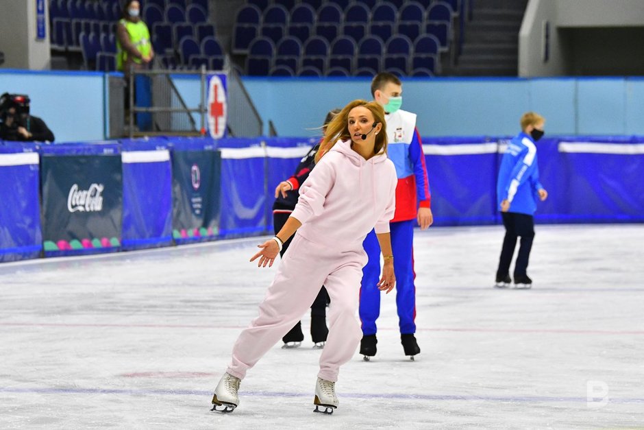 Сегодня в Казани с фигуристами Спартакиады Специальной Олимпиады SO Kazan 2022 встретилась олимпийская чемпионка Татьяна Навка. Она провела мастер-класс на льду, показала базовые упражнения. Проследила, как ребята выполняют шаги, вращения, и сама делала упражнения, подъезжая то к одному, то к другому спортсмену. Узнавая их имена, напоминала: «Владимир, не торопись!» или «Анечка, не бойся, давай вместе!» Потом она предложила показать прыжки — кто какие умеет. Часть ребят, правда, не решились прыгать. А кому-то прославленная спортсменка посоветовала разучивать уже более сложные элементы, она считает, что ребята уже к этому готовы.