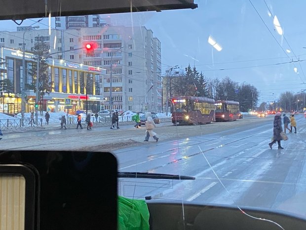 На улице Ершова в обе стороны встали трамваи
