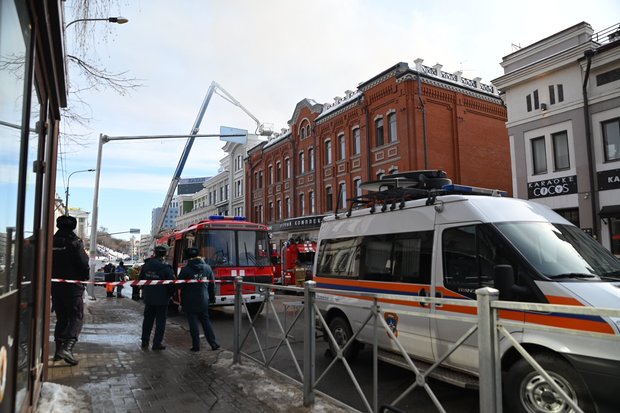 В центре Казани из-за пожара в ГУМе перекрыли улицы — фото