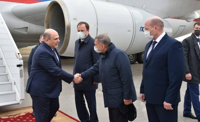 Председатель правительства России Михаил Мишустин прибыл в Казань. В Международном аэропорту города его встретил президент Татарстана Рустам Минниханов.