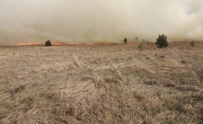 Это уже второй за сутки крупный пожар с возгоранием сухой травы — первый произошел минувшей ночью в Набережных Челнах, неизвестные подожгли поле у 35-го комплекса.