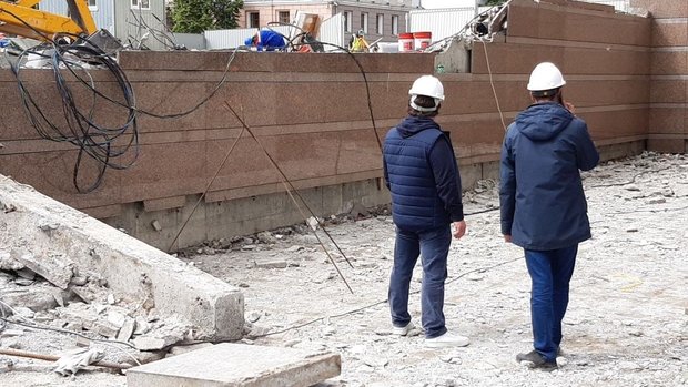 Upd.: у здания планируют полностью заменить плитку. По словам одного из рабочих, старая дала осадку.