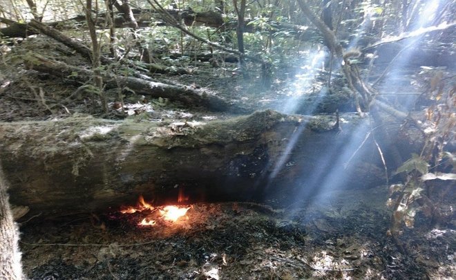 Огонь был локализован вчера, но продолжается тление. Отмечается, что тлеет около гектара территории: сухая трава, пни, стволы деревьев. Также в социальных сетях сообщают, что пожарных на месте работает немного.
