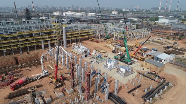 Тем временем строительство ЭП-600 в разгаре — ведутся работы по всем направлениям, в них задействованы 3 716 специалистов. В настоящее время строительно-монтажные работы реализованы на 30% — ведется обустройство подземных сетей и фундаментов, монтаж металлоконструкций эстакад и этажерок, монтаж технологического оборудования трубопроводов, а также кабельных лотков.
