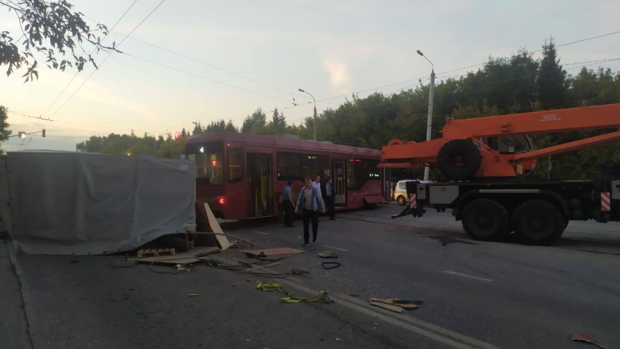 В Казани трамвай сошел с рельсов и столкнулся с автомобилем. Инцидент случился в 18:13 на улице Гвардейской, сообщили в МУП «Метроэлектротранс».