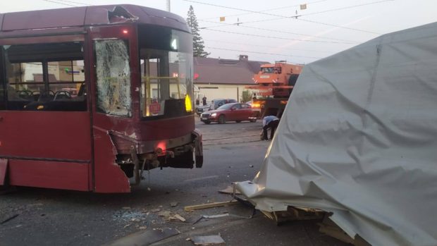 В Казани трамвай сошел с рельсов и столкнулся с автомобилем — фото