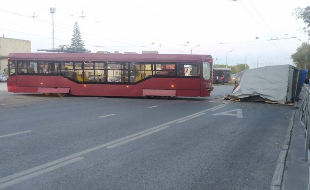Инцидент случился сегодня в 18:13. Трамвай сошел с рельсов после столкновения с автомобилем. В результате аварии пострадал водитель машины. На месте ДТП проводились восстановительные работы.