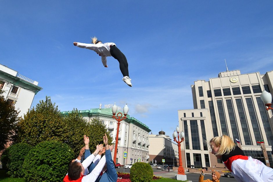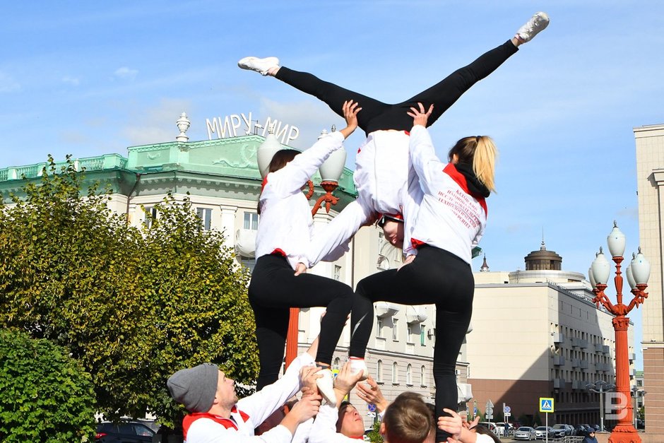 — Сегодня у нас обыкновенная спортивная тренировка, которую мы периодически проводим в разных парках. Имеет ли это мероприятие отношение к ситуации с чирлидершами из «Ак Барса»? Да, мы всячески поддерживаем их. Чирлидинг — это большая семья, и мы стараемся держаться вместе. Эта акция тоже как поддержка. Сегодня был показан спортивный чирлидинг, а в дальнейшем также будем участвовать и в других акциях поддержки, — сказал Рафкат Сахапов.