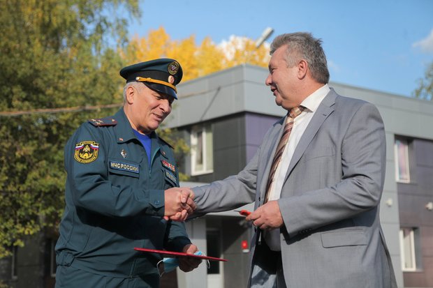 Ключи начальнику управления договорных подразделений федеральной противопожарной службы по РТ Рафаилю Мотыгуллину вручил генеральный директор ТГК-16 Эдуард Галеев.