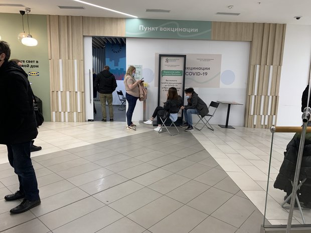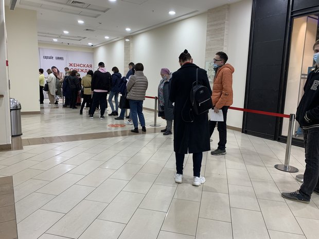 Очереди из желающих сделать прививку от коронавируса наблюдаются в торговых центрах «Южный», «Мега» и «Парк Хаус», сообщили «Реальному времени» очевидцы.