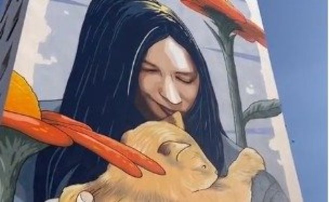 В Казани появился новый мурал. Изображение девушки с котом появилось на фасаде дома 4 по ул. Ломжинской в Советском районе.