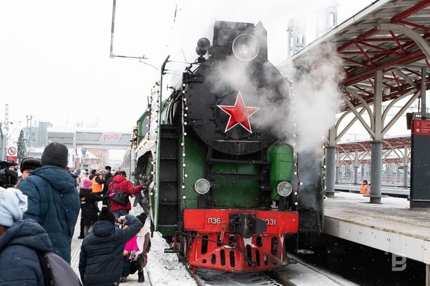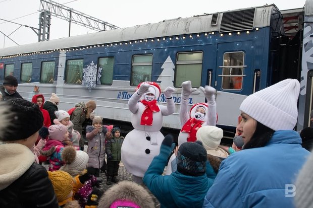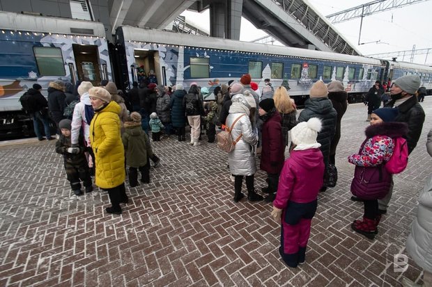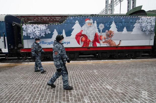 Сегодня в столицу Татарстана прибыл поезд Деда Мороза из Великого Устюга. Он прибыл на вокзал Казань-1 в 09.25.