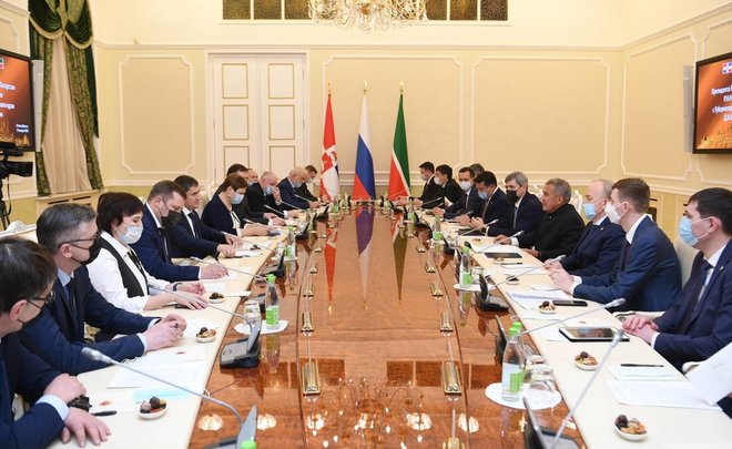 Минниханов в ходе встречи предложил организовать обмен опытом в части создания инфраструктуры поддержки бизнеса, в области цифровизации, использования электронных площадок, развития комфортной городской среды и обращения с ТКО, сообщает пресс-служба президента РТ.