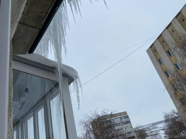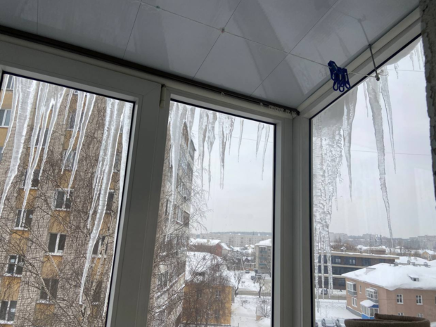 Такую картину из квартиры в одном из домов видят жители казанских Дербышек. Сосульки превратились в целую декорацию для кровли и балкона.