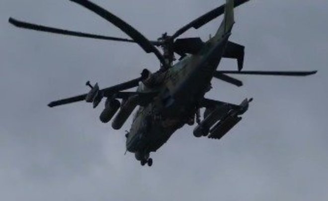 В конце прошлой недели экипажи армейской авиации ВКС России нанесли удары ракетным вооружением по оборудованным укрепленным опорным пунктам украинских националистов. Нанесение авиационных ударов производилось парами с малых и предельно малых высот. В результате также была ликвидирована замаскированная бронетехника.