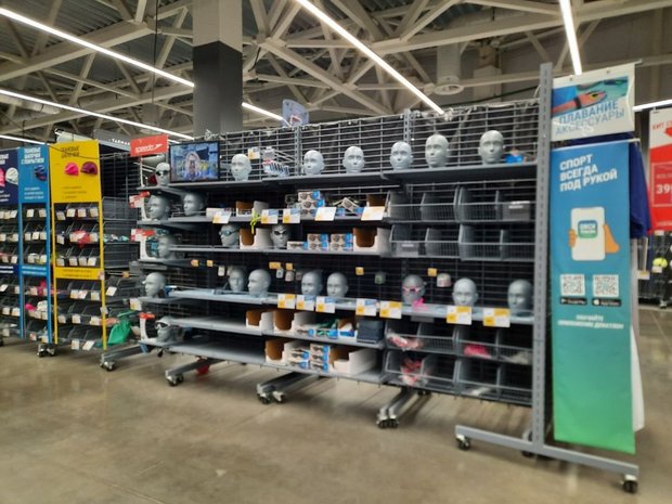 После объявления о приостановке продаж Decathlon’а в Татарстане в казанском магазине по ул. Родины, 51, случился ажиотаж. Люди массово скупают спортивный инвентарь и одежду, а скидки на некоторые товары достигают 70%, выяснило «Реальное время».