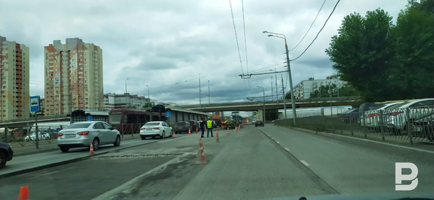 В Казани на проспекте Ямашева образовался затор из-за ремонта дороги — фото