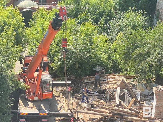 Сегодня строители с помощью спецтехники полностью разобрали строение, а затем увезли его в Лаишевский район — реставрация будет проходить там. На месте остался фундамент и кирпичи.